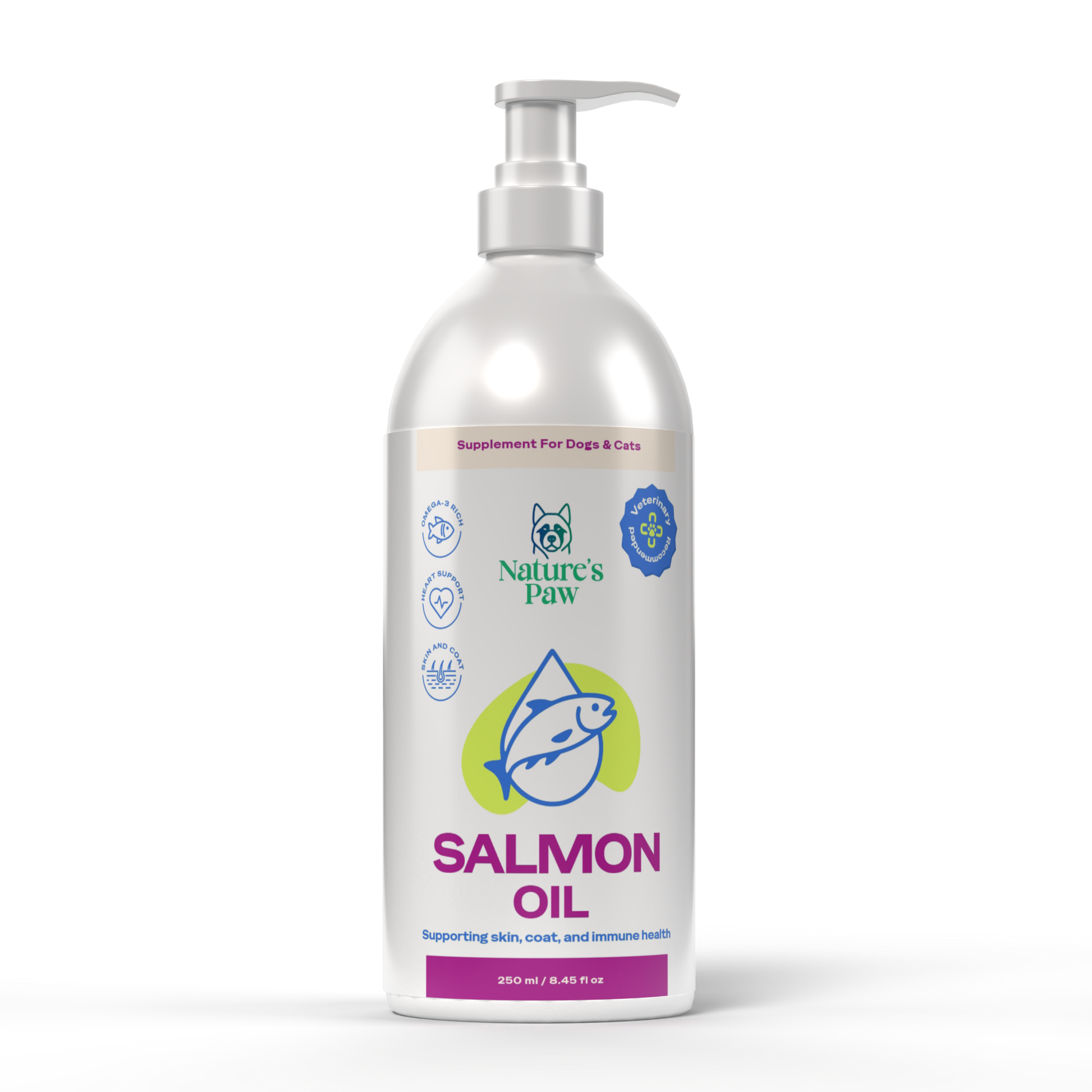 Prirodno lososovo ulje. Bogato Omega-3 i Omega-6 masnim kiselinama koje doprinose zdravlju kože, dlake, zglobova i imuniteta vašeg ljubimca.